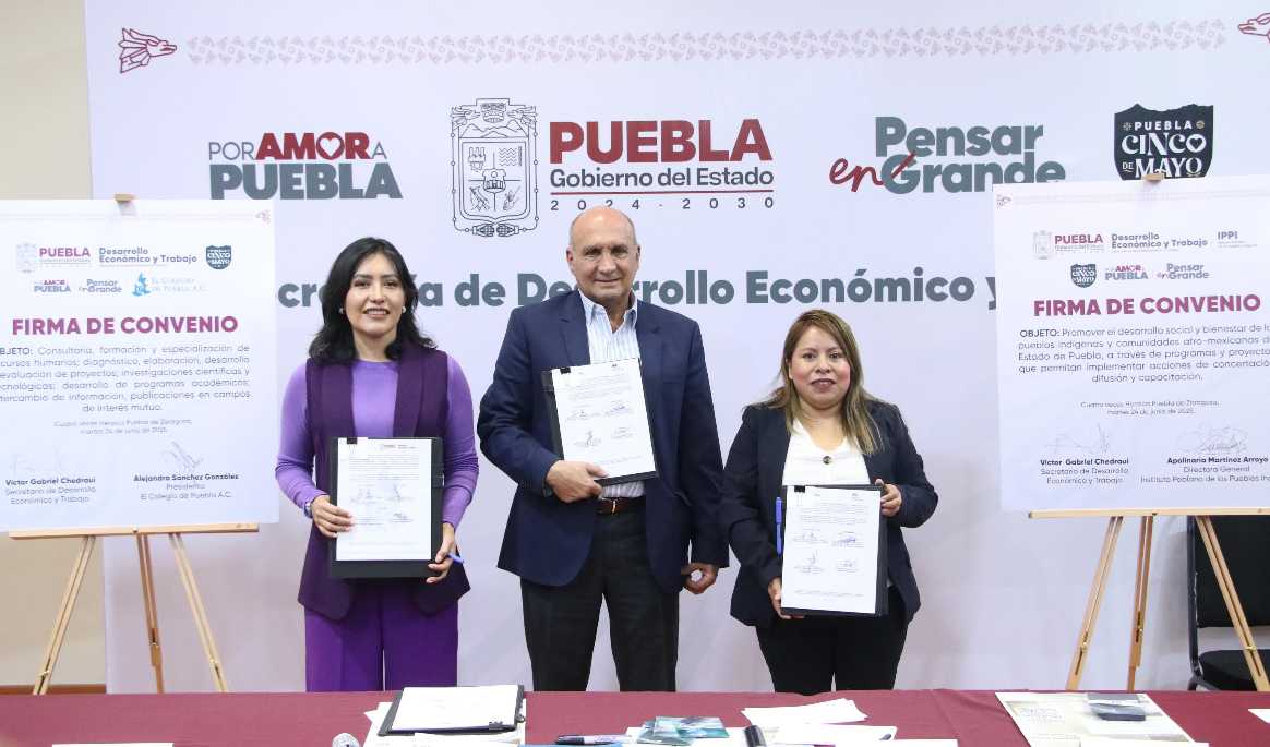El gobierno de Alejandro Armenta impulsa el desarrollo económico de los pueblos indígenas y acceso a consultoría en tecnología e investigación para este sector social, a través de la colaboración entre la Secretaría de Desarrollo Económico y Trabajo (SEDETRA), el Instituto Poblano de los Pueblos Indígenas (IPPI) y el Colegio de Puebla.
