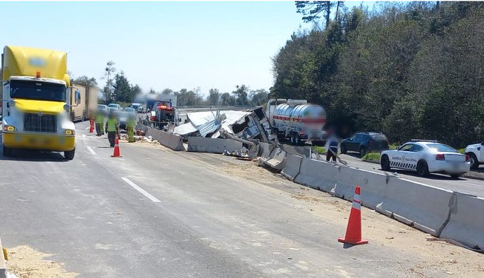 Un grave accidente se registró este jueves en la autopista Xalapa-Perote, en Veracruz, a la altura del municipio de Tlacolulan, donde un tráiler cargado de abarrotes volcó y el chofer resultó con lesiones de consideración.