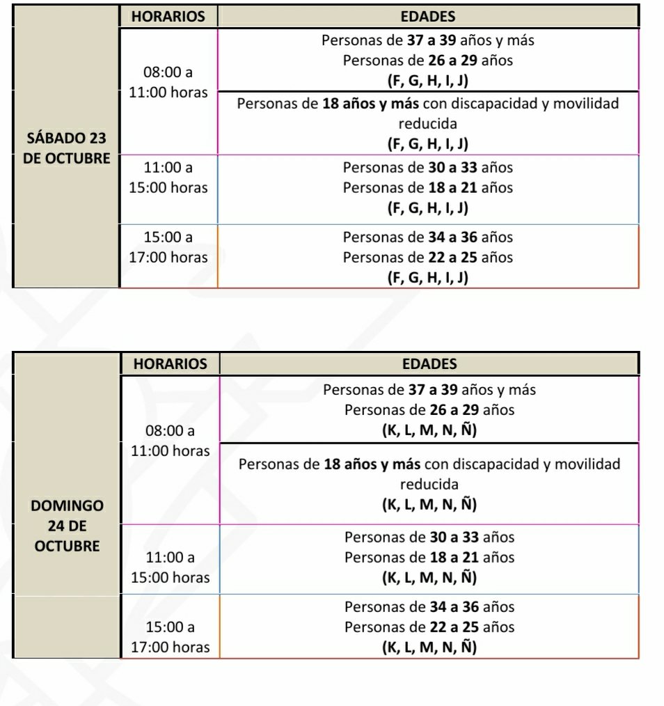 De igual manera, las autoridades recomiendan a la población respetar los lineamientos establecidos como son: DÍA de acuerdo con la letra inicial del primer apellido, HORA conforme a la edad de la persona que acuda a solicitar el biológico, y LUGAR, para quienes reciban la segunda dosis deben acudir a los mismos sitios donde aplicaron la primera; mientras que la población de 18 a 29 años deberá consultar su punto de vacunación por localidad y colonia.
