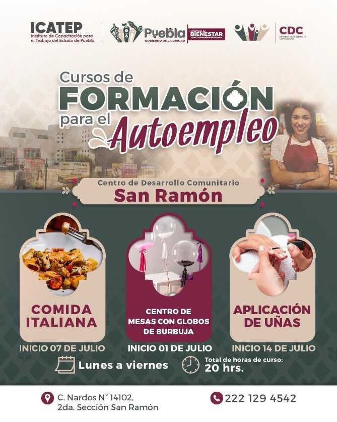 El Gobierno de la Ciudad, encabezado por el alcalde Pepe Chedraui Budib, invita a la ciudadanía a inscribirse en los cursos gratuitos de capacitación que se impartirán en coordinación con el Instituto de Capacitación para el Trabajo del Estado de Puebla (ICATEP). Los talleres se ofrecerán en varios Centros de Desarrollo Comunitario (CDC), con validez oficial y orientación hacia el emprendimiento.