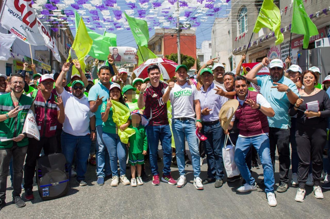 Jimmy Natale y Tony Gali este viernes recorrieron diferentes calles de la junta auxiliar de San Pablo Xochimehuacan, para dar a conocer sus propuestas.