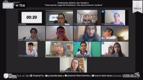 En esta Mesa de Parlamento Abierto se contó con la participación de Lizeth Mejorada Barrios, grupo Puebla Vigila; Sandra Patricia Soto Romero, Nadia Alicia Tejeda Vázquez y Ángel Cervantes García, Javier Castillo Alvarado, Provida; Alehí Balderas, Cuatlicue Siempre Viva-GIRE; Alejandro Atonal Soto, Karla Lozano, feminista; José Manuel Madrazo, Raymundo Pastrana.