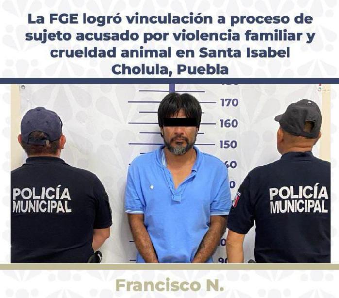 La Fiscalía General del Estado logró mediante la aportación de diversos datos de prueba, la vinculación a proceso de Francisco N., de 41 años de edad, acusado de violencia familiar y de delitos contra los animales mediante actos de crueldad en el municipio Santa Isabel Cholula, Puebla.