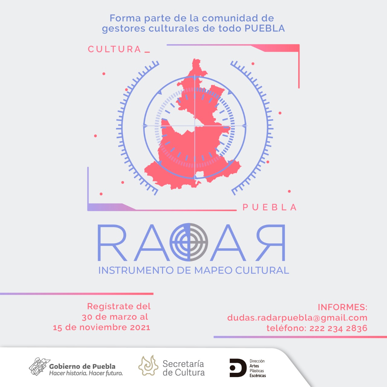 Para fortalecer los grupos de gestores culturales en Puebla y generar proyectos colaborativos con otras instancias, la Secretaría de Cultura pone en marcha la herramienta “Radar”, que permitirá visibilizar e identificar iniciativas, manifestaciones o infraestructura cultural que pueda difundirse o rescatar.