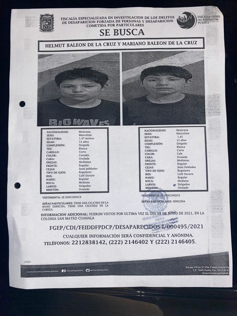 Durante la tarde los padres de los gemelos recibieron una llamada para darles información, por lo que solicitaron apoyo de las autoridades del municipio de San Martín Texmelucan donde les mencionaron fueron vistos acompañados de una adolescente.