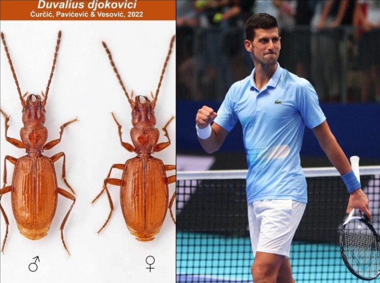 Científicos serbios bautizaron una nueva especie de escarabajo con el nombre de Novak Djokovic, debido a su velocidad, fuerza, flexibilidad, durabilidad y capacidad para sobrevivir en un entorno difícil.