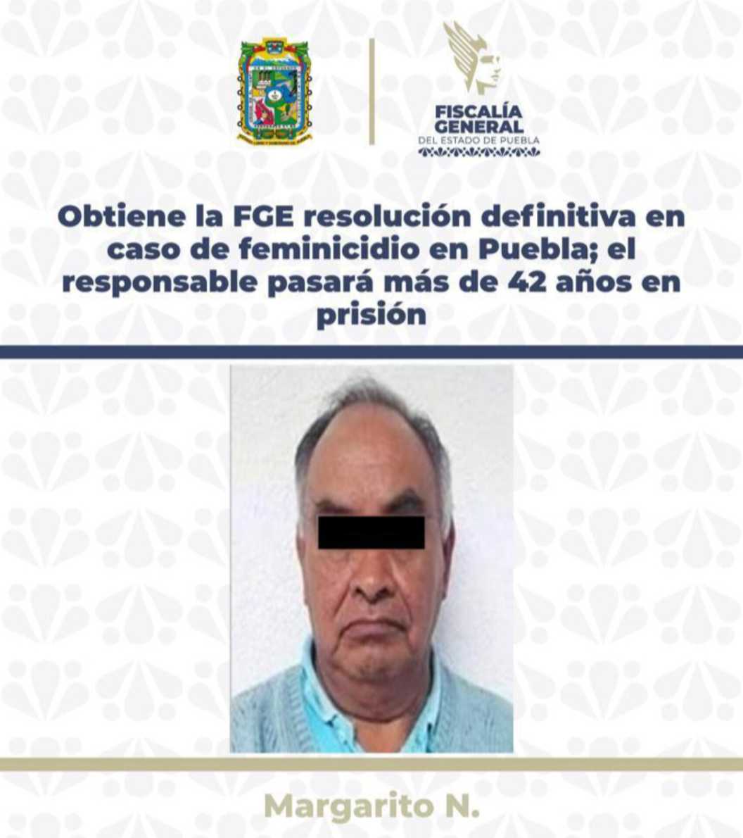 La Fiscalía General del Estado de Puebla logró que quedara firme la sentencia de 42 años, 6 meses de prisión, dictada contra Margarito N., por el delito de feminicidio, luego de que el recurso de apelación promovido por su defensa fuera desechado por la autoridad judicial correspondiente.