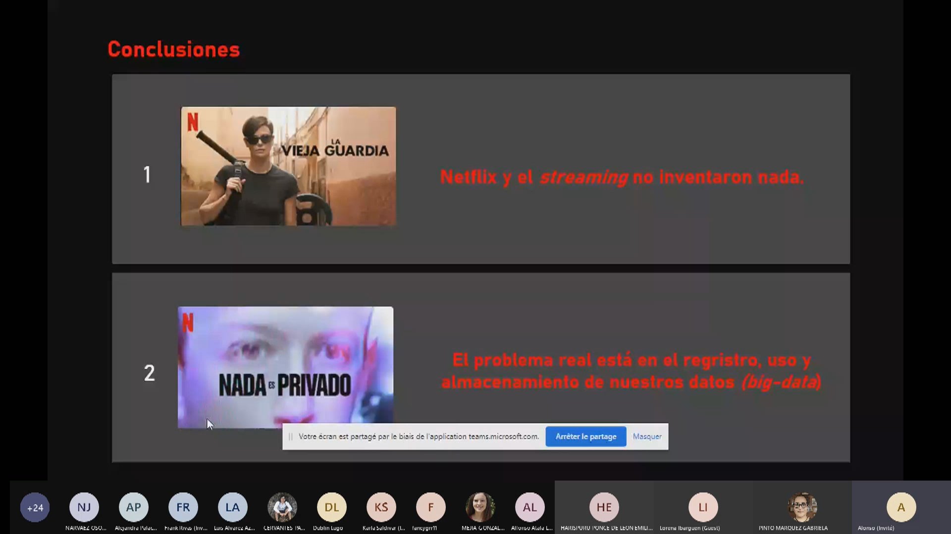 El ponente concluyó diciendo que es nuestro derecho como consumidores exigirle a Netflix el resguardo de nuestra información personal para evitar una situación similar a la de Google o Facebook en la cual los datos de millones de personas fueron vendidos al mejor postor