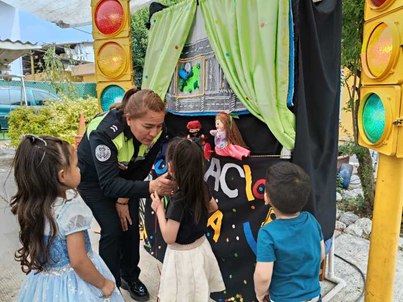 Por su parte, el teatro guiñol impartido por el área de Educación Vial busca generar conciencia desde temprana edad sobre el autocuidado en la vía pública. A través del juego y la participación activa, las y los menores aprenden el significado de señalamientos viales, el uso correcto del 1×1 en los cruceros, los colores del semáforo y otras normas básicas de tránsito.