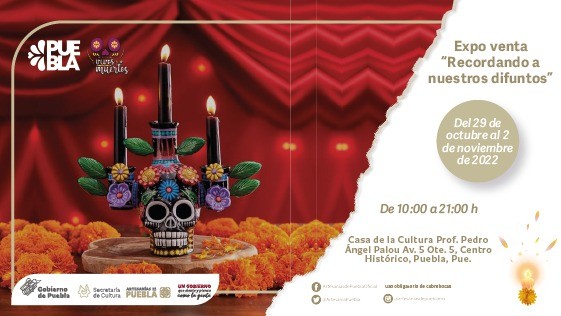 La expoventa estará abierta al público en general, el cual, además, podrá disfrutar de la exposición del “Concurso de Ofrendas Tradicionales a los Muertos” en este mismo recinto. Para más información, las y los interesados pueden consultar la página web de la Secretaría de Cultura: sc.puebla.gob.mx.