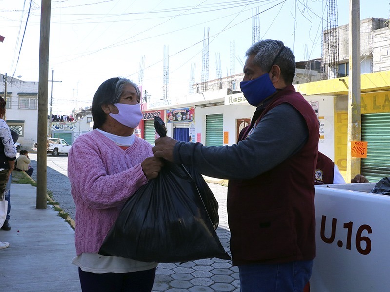 Familias afectadas por las precipitaciones pluviales de los últimos días en la junta auxiliar de San Sebastián de Aparicio, en la capital poblana, recibieron paquetes alimentarios por parte del Sistema para el Desarrollo Integral de la Familia del Estado de Puebla (SEDIF).