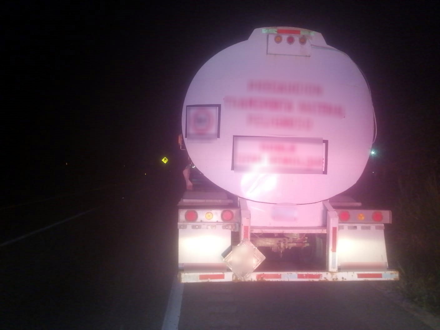 En el kilómetro 143+500 de la carretera Coatzacoalcos-Villahermosa, municipio de Villahermosa, guardias nacionales tuvieron contacto con un tractocamión, acoplado a un semirremolque tipo tanque, que circulaba sin los rombos de identificación de material y residuos peligrosos.