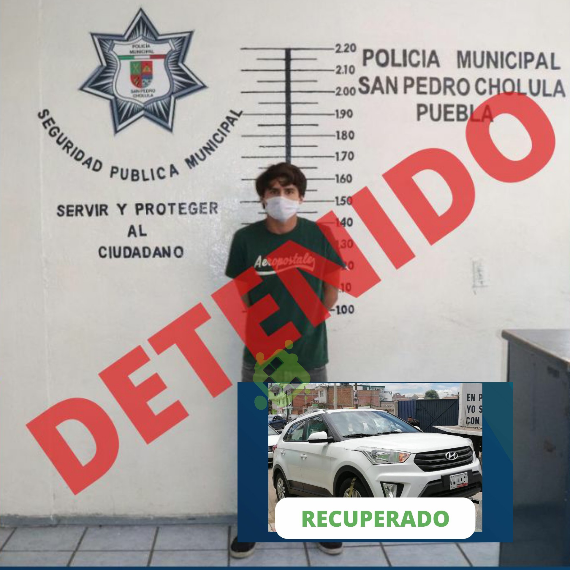 San Pedro Cholula, Pue.- Como resultado de acciones de vigilancia y de reacción inmediata, elementos de la Secretaría de Seguridad Ciudadana de San Pedro Cholula, aseguraron a Víctor Gabriel»N», de 22 años, por el presunto delito de detentación de vehículo con reporte de robo.