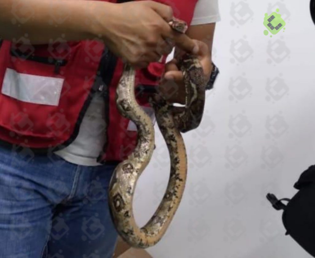 El reptil se encontraba en una estructura que sostiene el techo de lámina galvanizada, se verificó que se trataba de una vibora tipo boa constrictor, de aproximadamente 1.5 metros de largo.