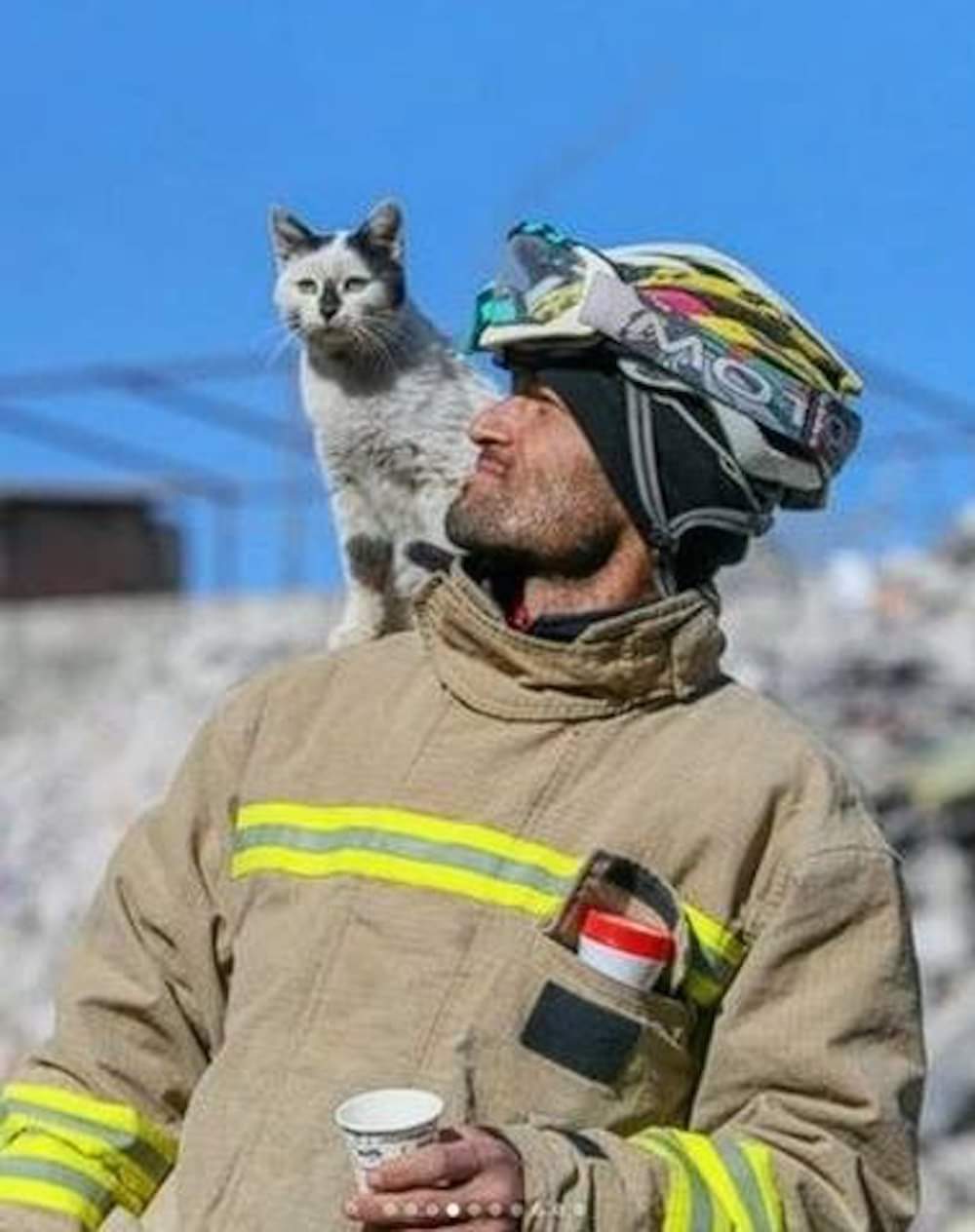 Un rescatista turco salvó a un gatito que se encontraba atrapado bajo los escombros de una casa que se derrumbó tras el terremoto de Turquía.