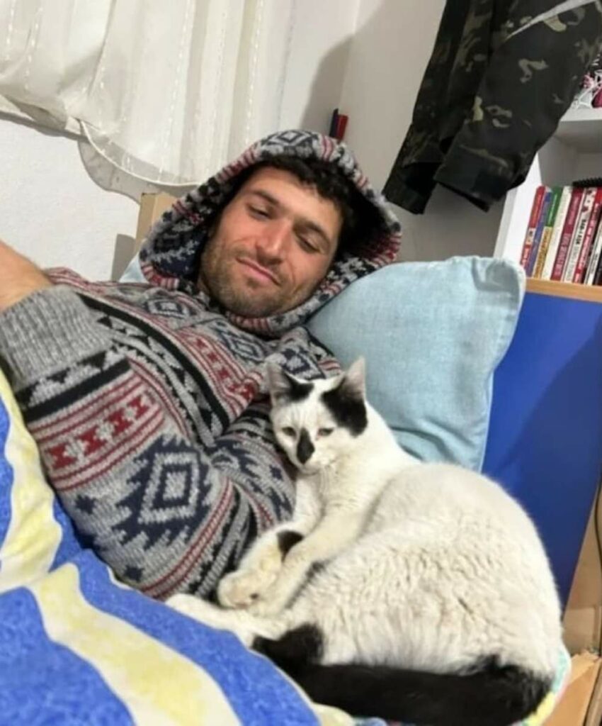El felino no quiso separarse de su héroe y lo seguía a todas partes, y se mostraba muy cariñoso con su héroe.