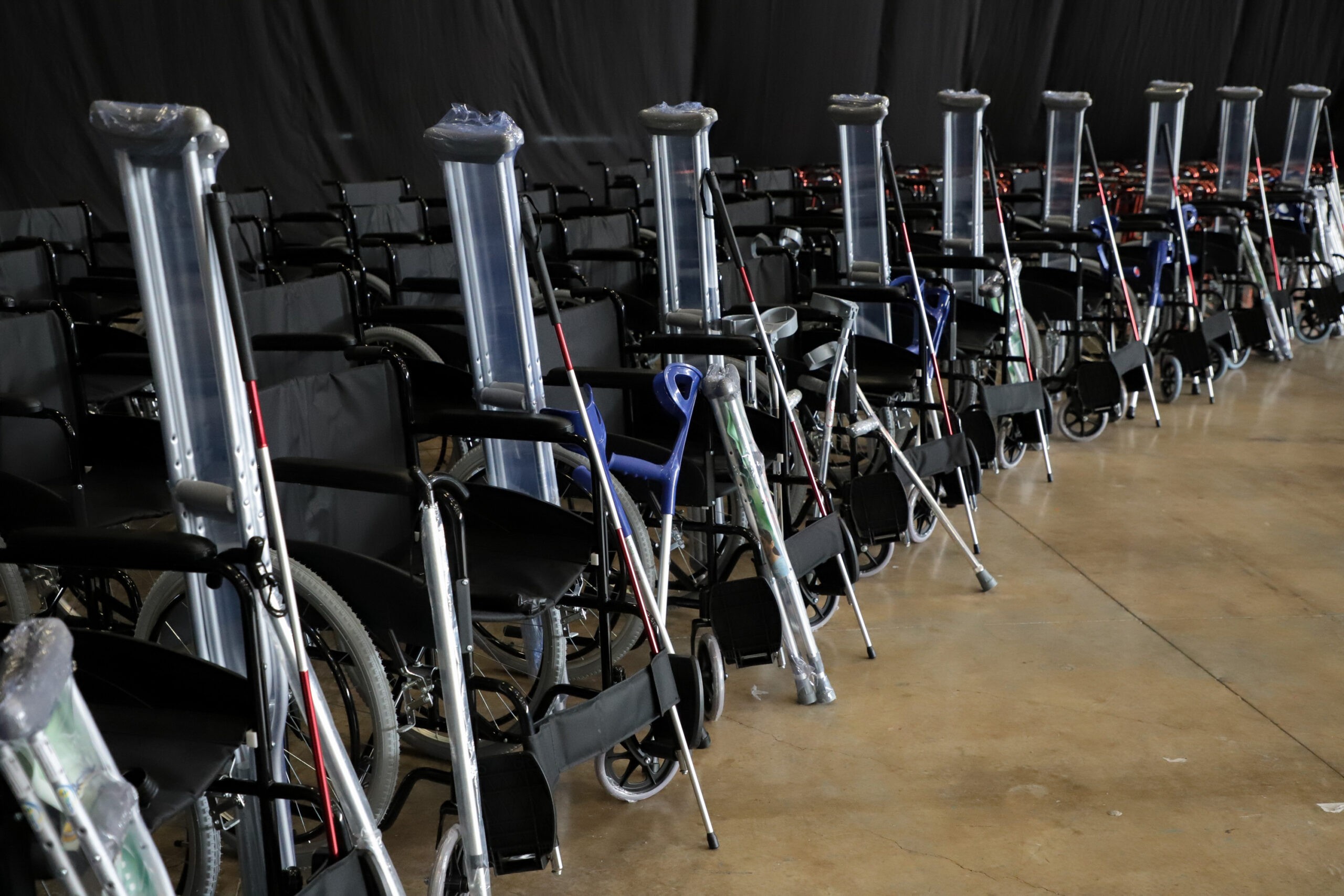 Fueron otorgadas 750 sillas de ruedas de adulto, 500 muletas de adulto, 150 muletas infantiles, 500 andaderas de adulto, 200 andaderas infantiles, 50 sillas de ruedas para Parálisis Cerebral infantil (PCI), 50 sillas de rueda para Parálisis Cerebral Adulto (PCA), 500 bastones tetrápodos, 300 bastones blancos, 150 muletas canadiense adulto, 100 muletas canadiense infantil, mil 223 bastones de apoyo para personas con debilidad visual, 100 sillas de ruedas infantil y 50 sillas de ruedas activas.