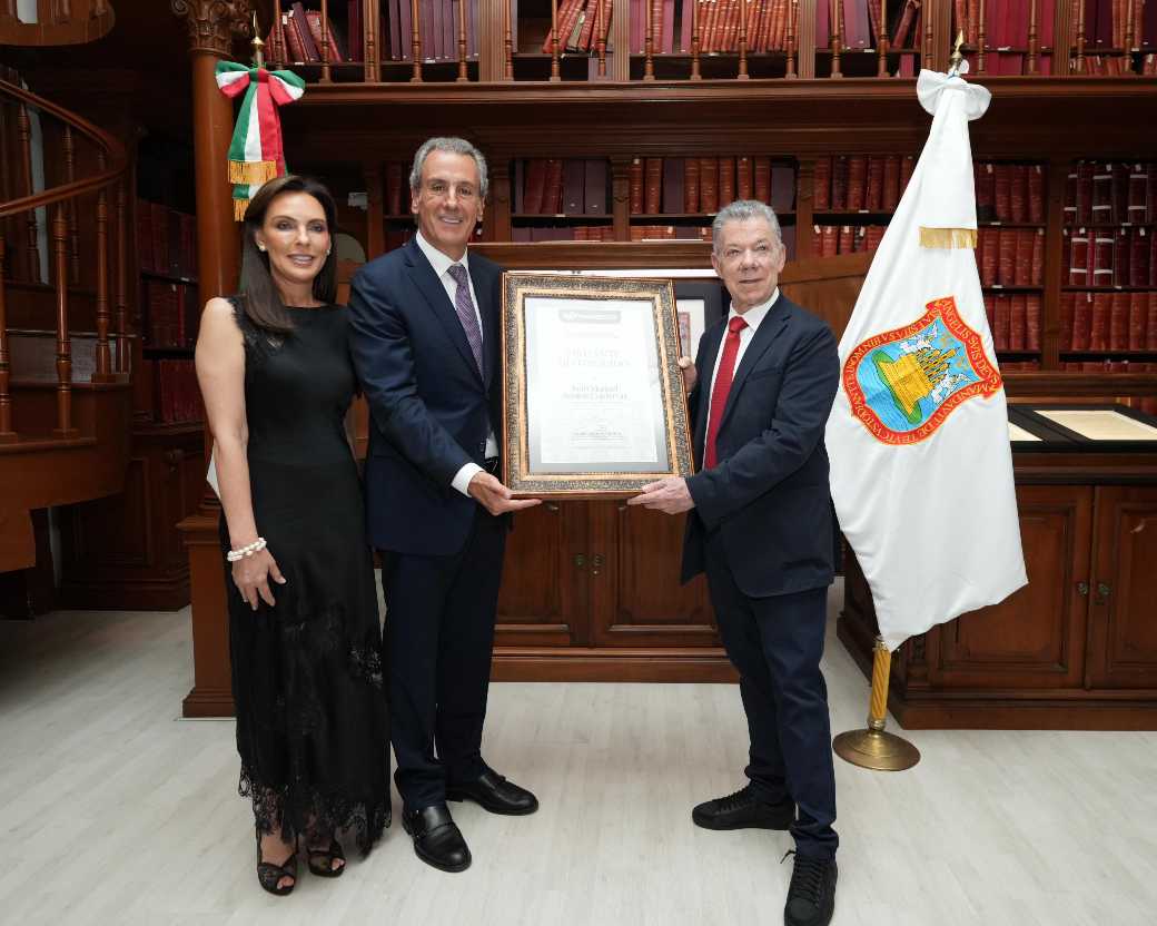 Como parte de las actividades del Smart City Expo LATAM Congress 2025, el presidente municipal, Pepe Chedraui, junto con la presidenta del patronato del SMDIF, MariElise Budib, recibió a Juan Manuel Santos Calderón, expresidente de Colombia y Premio Nobel de la Paz 2016, a quien le dieron un recorrido con la historia de la capital por el Palacio Municipal y salón de Cabildo.