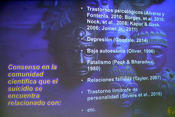 Al dictar la conferencia Suicidio: mitos y realidades, el especialista destacó que no obedece a un desorden psicológico, razón por la cual debe analizarse como parte de un entorno colectivo con historicidad e implicaciones éticas, políticas y sociales.