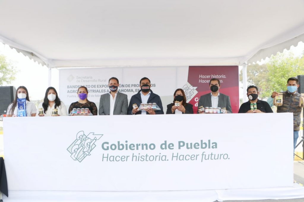 Este día fue el banderazo de salida del embarque de siete toneladas con ocho productos agroindustriales como café, salsas, mole y miel, por mencionar algunos, de la zona metropolitana, sierras Nororiental y Negra, así como de Tehuacán, que tendrán un stand especial bajo la etiqueta “Orgullo Puebla” en la cadena de supermercados “Las Américas” en Tulsa, Oklahoma, Estados Unidos.
