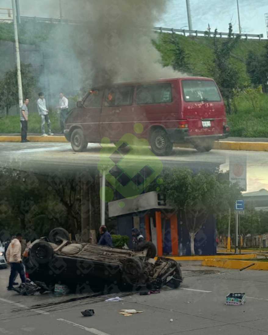 Este domingo, se registraron dos fuertes percances vehiculares en la ciudad de Puebla. El primero se suscitó en la Calzada Ignacio Zaragoza, en donde un automóvil particular volcó y dos personas resultaron lesionadas.