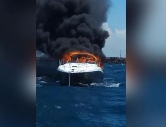 Un yate se incendió en las costas del puerto de Progreso en el estado de Yucatán y sus tripulantes se lanzaron al mar para salvar sus vidas.
